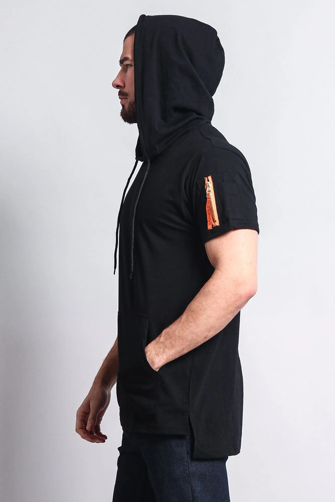 Upgrade your basic tee with this hooded bomber version. Features that classic timeless MA-1 style sleeve pocket that you might originally find on this season’s most popular bomber jackets. Looks great layered under a jacket!