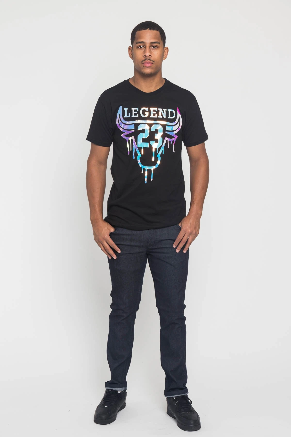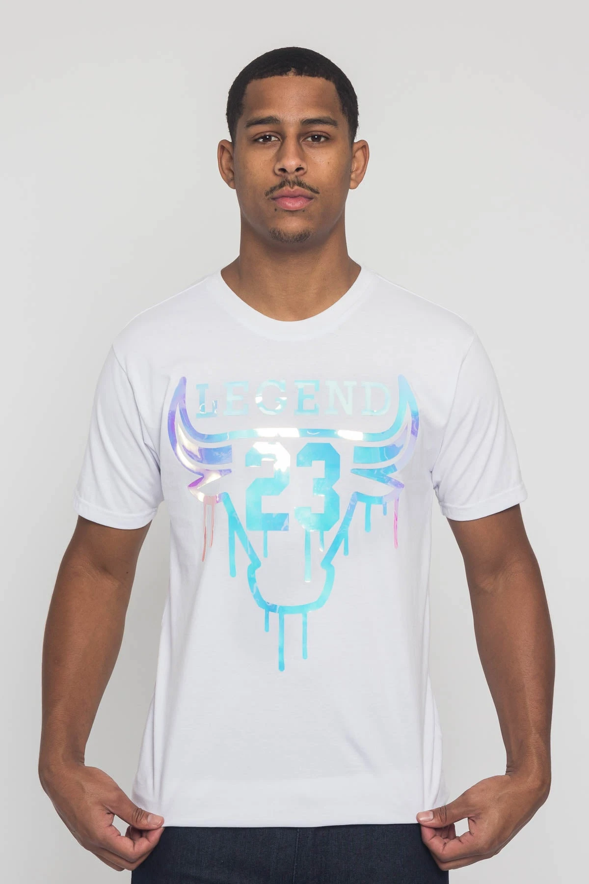 Pop out and stand out wherever you go in our trendy new tee.This t-shirt features detailed iridescent foil to catch anyone’s attention. Inspired by the latest high fashion trends so you can have quality that fits your style at a price that fits your budget.Â