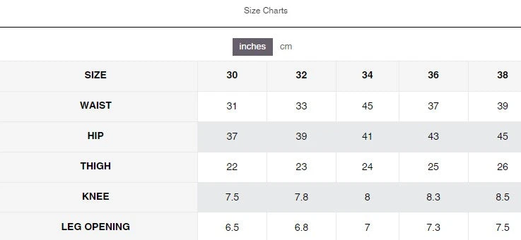 | Size | 30/30, 32/30, 32/32, 34/30, 34/32, 36/30, 36/32, 38/32 |