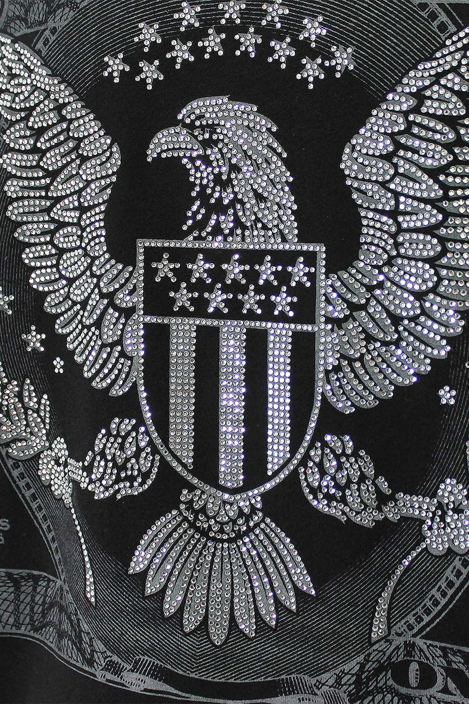 Money eagle print with rhinestone t-shirtsShort sleeve