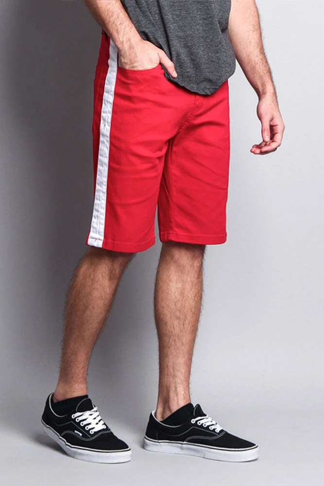 Stay in style with our jean shorts featuring a trendy accent band on each side.Â