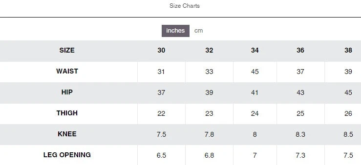 | Size | 30/30, 32/30, 32/32, 34/30, 34/32, 36/30, 36/32, 38/32 |