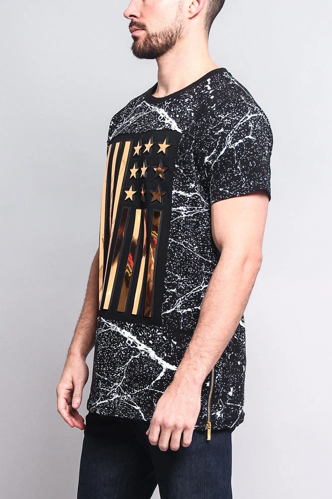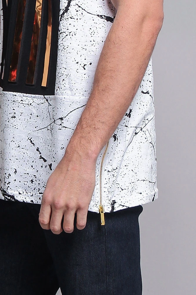 The basic tee has been updated with eye-catching metallic accents and side zippers. Features a long length that’s perfect for layering and a cotton-poly blend for super comfort!