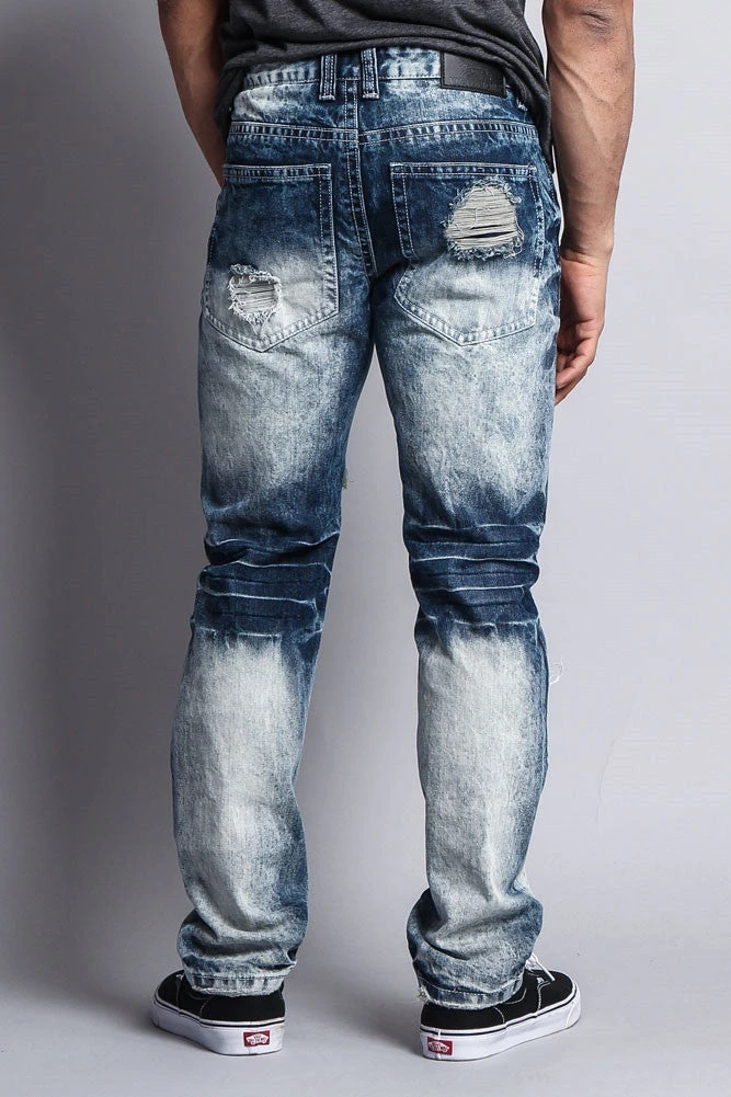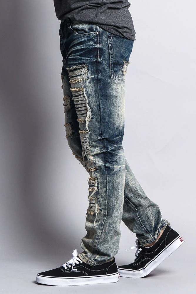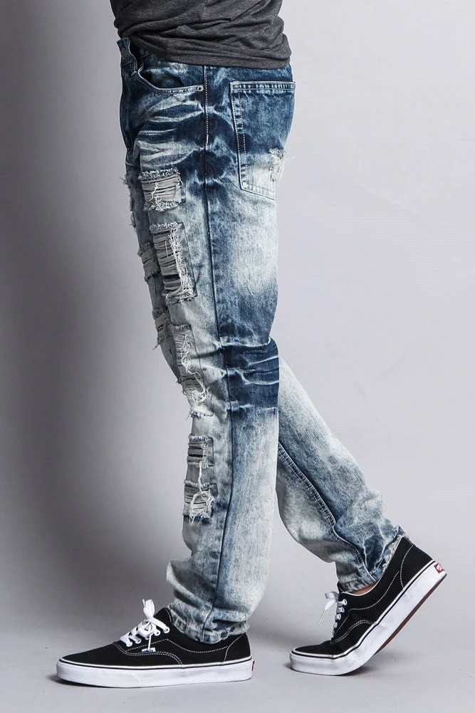 Our slim fit is perfect for the guy who’s on top of his style game, but wants a little bit extra room. Now featuring pre-ripped and washed design for that worn-in look.